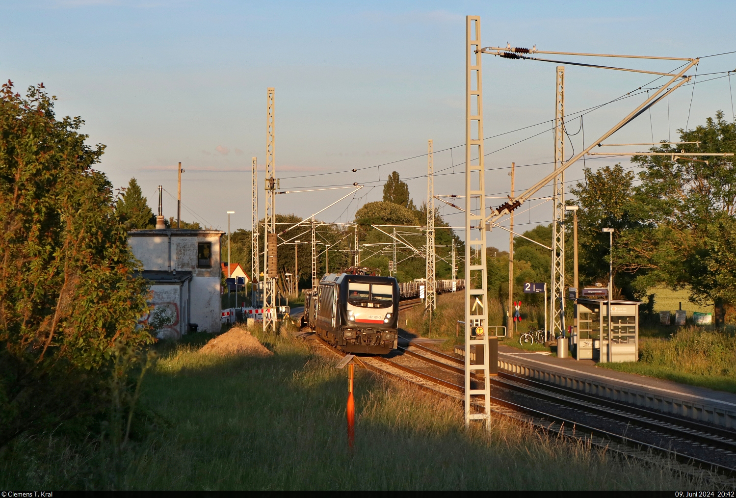 Lok E 186 139 (NVR-Nummer: 91 80 6186 139-2 D-AKIEM) mit einem Schienen Transportzug am 21. September 2025 bei Dabendorf.