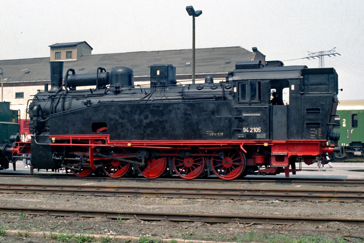Die 1923 gebaute sächs. XI HT erhielt bei der SächsStsB die Tfz. Nr. 2129. Im Umzeichnungsplan der DRB von 1925 war für die Tenderlok die Nummer 94 2105 vorgesehen.Auf der großen Ausstellung "150 Jahre erste deutsche Fernbahn" auf dem ehemaligen Dresdner Güterbahnhof neben dem Hbf. Leipzig entstand am 20.05.1989 diese Aufnahme. Ernst Lauer