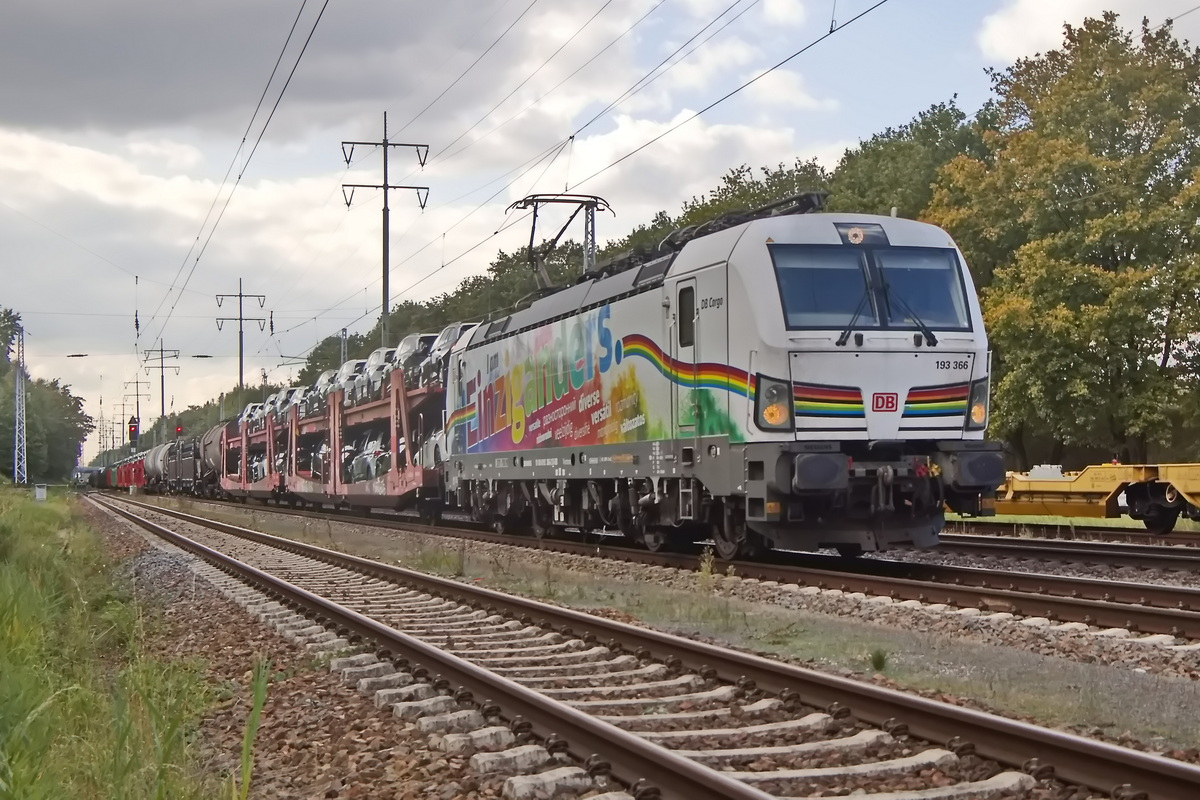 Am 12.10.25 führte der BLS Cargo-Vectron 475 433 für die HSL den Toyota-Autozug durch das herbstlich gefärbte Wittenberg-Labetz Richtung Falkenberg(E). Martin Schneider