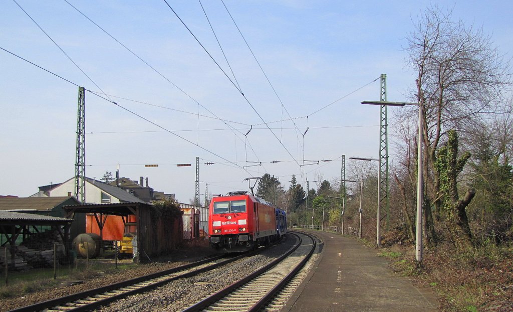Railion 185 230-0 mit Touax-Wagen Richtung Wiesbaden, in Erbach (Rheingau); 24.03.2010