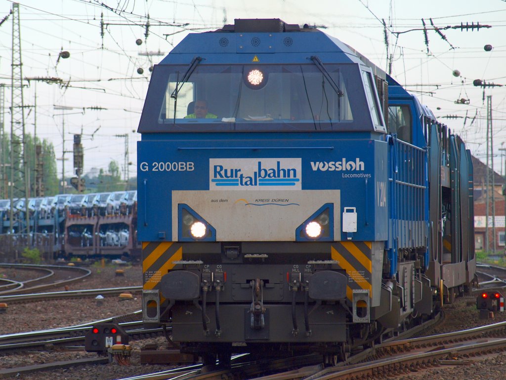 V204 von der Rurtalbahn zieht am 01.05.2010 einen Autozug aus Aachen West über die Montzenroute nach Belgien.