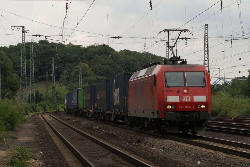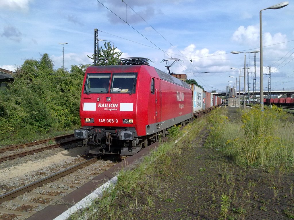 Hier laufen die KBS 340, 330 und 250 zusammen. Aus Rtg. Bernburg kommt links 202 453 der WFL mit einem Containerzug, während in der Mitte ebenfalls mit einem Containerzug, 145 054 von Railion in den Bahnhof einfährt. Bild ist von der Brücke nach Halle-Ost aufgenommen.