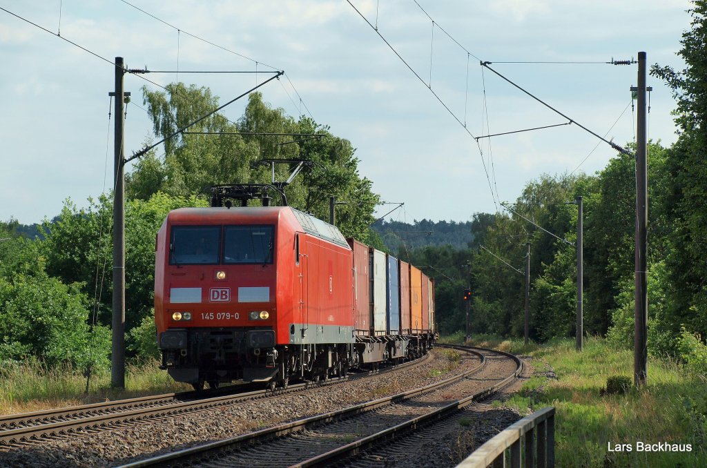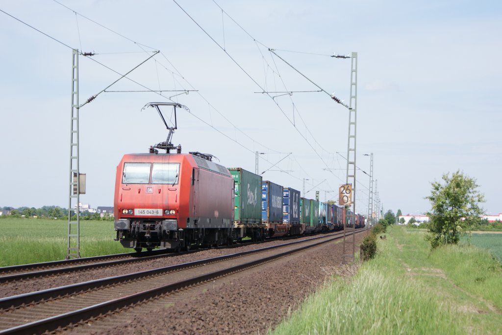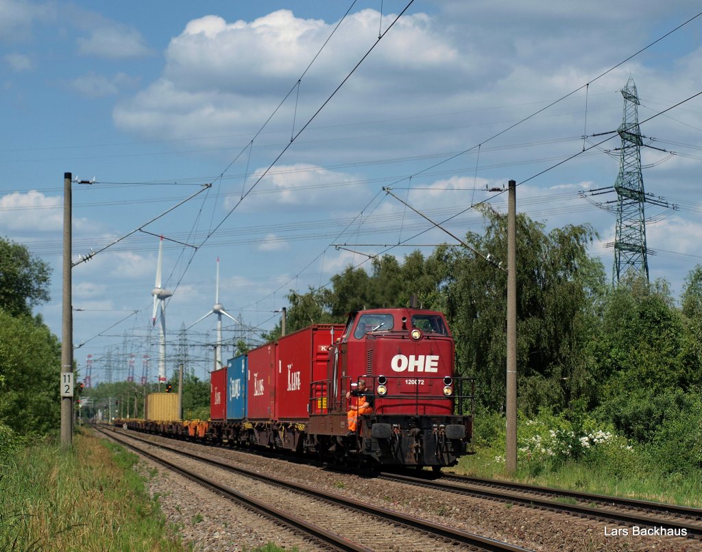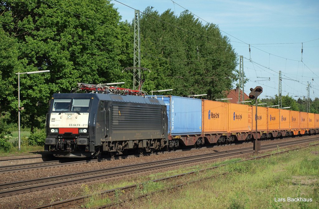 ES 64 F4-211 der HSL Logistik GmbH Hamburg hat am 5.06.10 einen Containerzug Richtung Hamburg-Waltershof am Haken und durchfährt hier gerade Radbruch. Lars Backhaus
