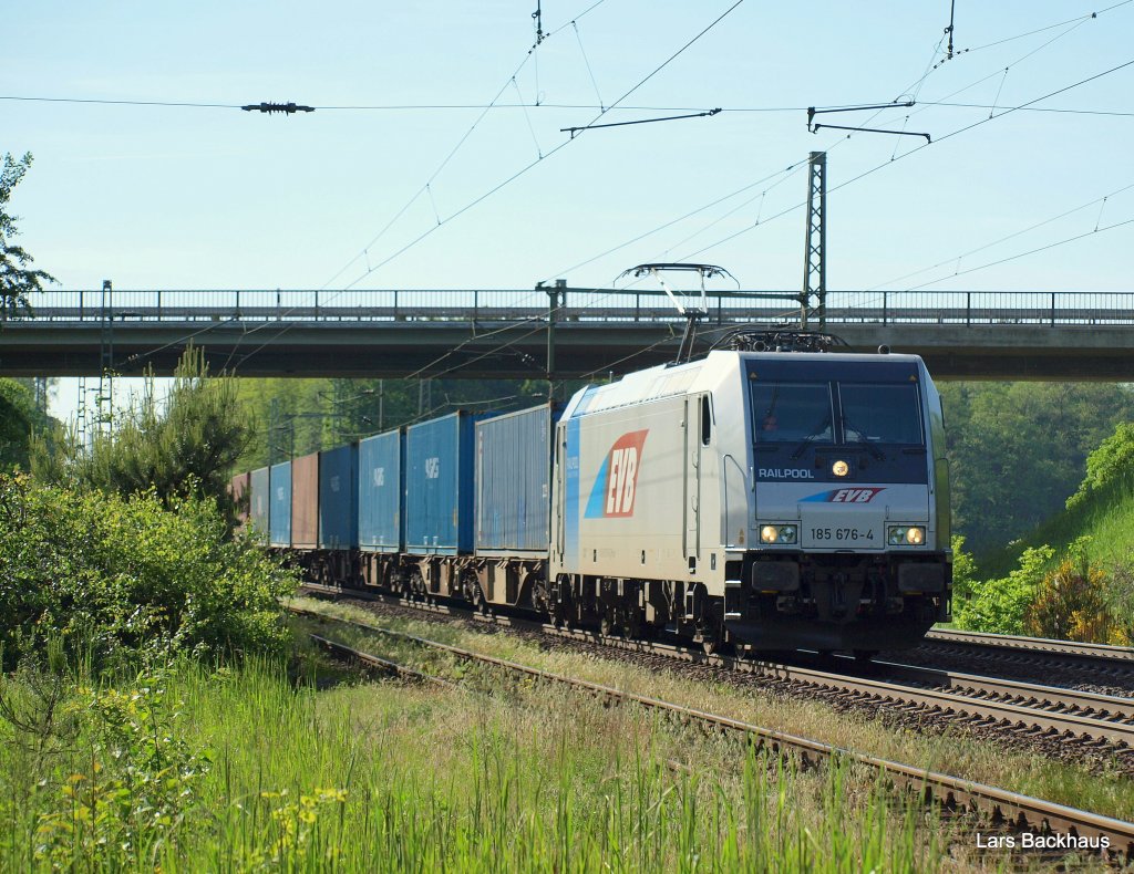 185 671-5 von Railpool vermietet an die Ruhrtalbahn poltert am 23.06.10 mit einem Containerzug aus Hamburg-Waltershof durch Hamburg-Moorburg. Lars Backhaus