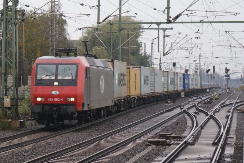 "Porsche Taurus" 182 004-2 fuhr an einem nass/kalten 10.10.2009 mit einem Containerzug am Haken,durch den S-Bahnhof Dedensen/Gümmer in Richtung Bremen. Stefan