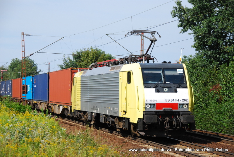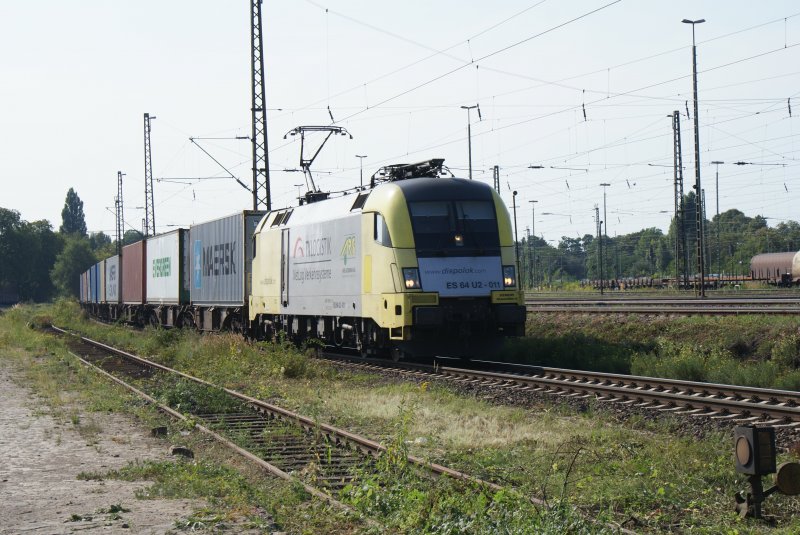 Die an die TX Logistik vermietete ES 64 U2-010 befördert am 26.08.09 einen Containerzug aus Hamburg-Waltershof durch Hamburg-Moorburg Richtung Maschen. Lars Backhaus