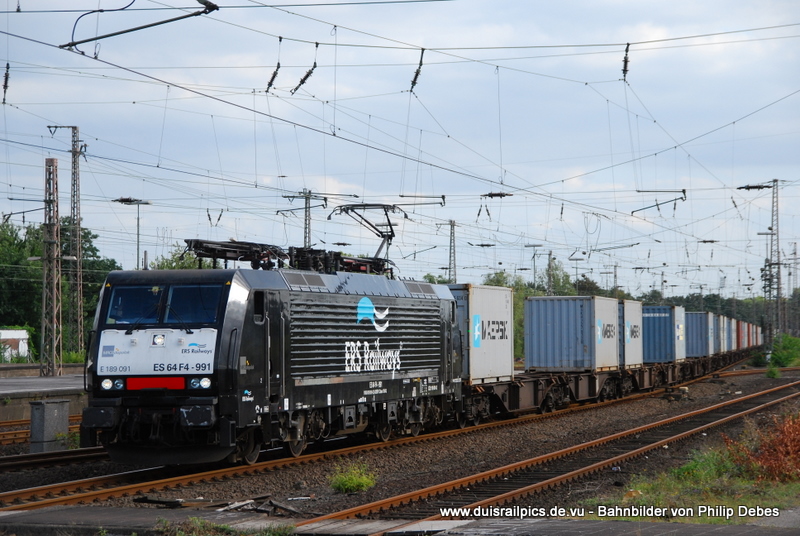 ES 64 F4 - 991 (ERS Railways) fährt am 30. August 2009 um 17:37 Uhr mit einem GZ durch Duisburg Hbf +++ Aber Vorsicht: Im linkem Fenster oben rechts ist Spongebob Schwammkopf mit on Tour, also wenn das mal gut ging?!?!?! Philip Debes