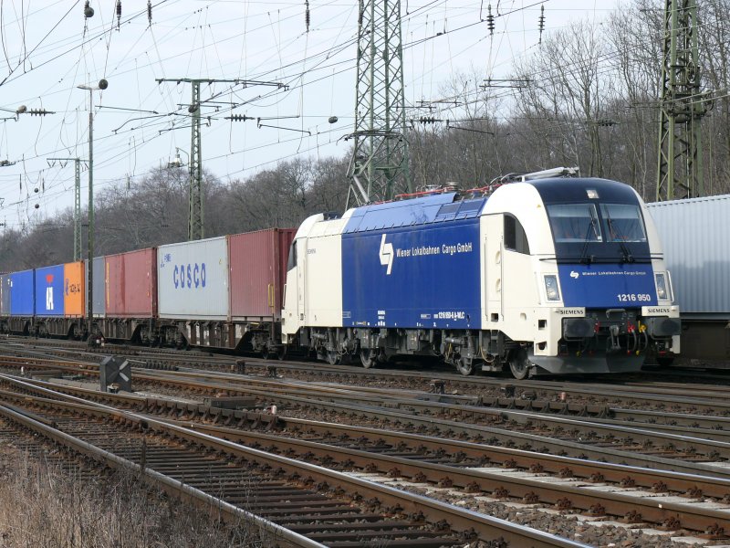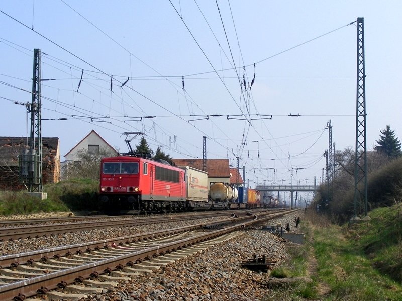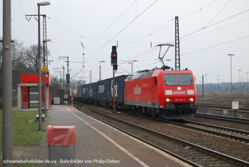 185 519-6 der Verkehrsbetriebe Peine-Salzgitter (VPS) zieht am 31.03.09 einen Containerzug aus dem Hamburger Hafen durch Ashausen Richtung Süden. Lars Backhaus