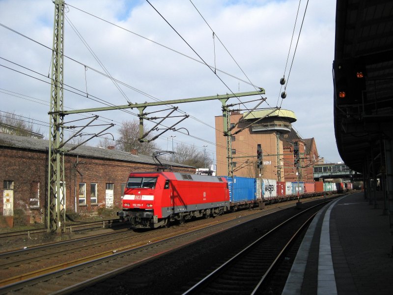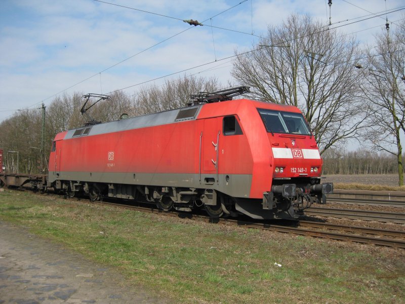 152 149-1 steht am 31.03.09 mit dem IKS 43185 Hamburg Alte-Süderelbe - Wolfurt in Radbruch auf einem Ausweichgleis um mehrere schnellere Züge überholenzulassen. (Vielen Dank nochmal an den Tf für das Gespräch, die Führerstandsbesichtigung und die Zug Nr.) Lars Backhaus