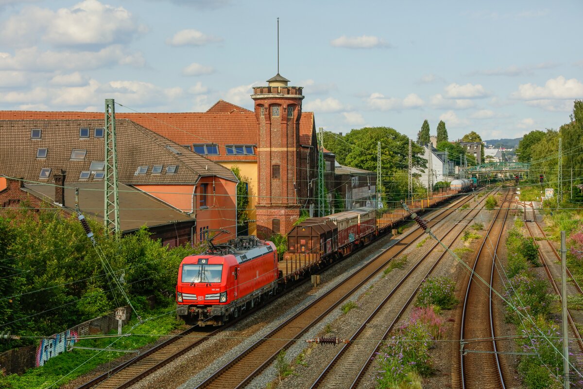 Ende Juni 2024 war die Elektrolokomotive 187 191 mit einem gemischten Güterzug bei der Durchfahrt in Wanne-Eickel zu sehen.