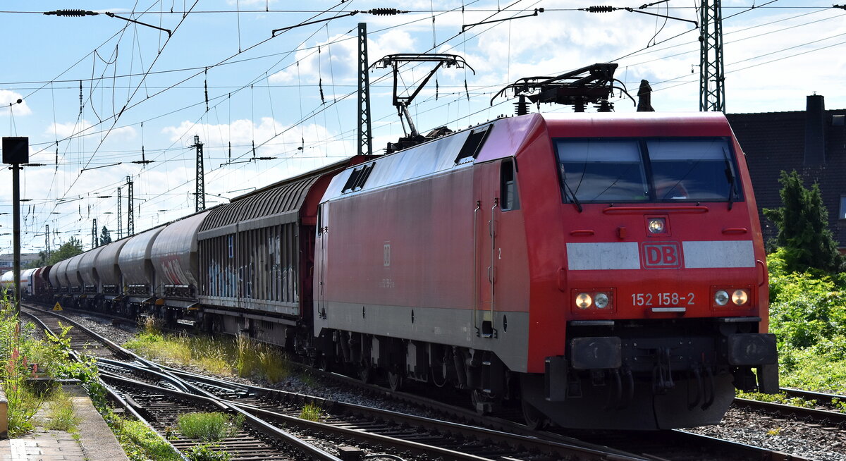 DB Cargo AG, Mainz mit ihrer"152 158-2" [NVR-Nummer: 91 80 6152 158-2 D-DB] und einem gemischten Güterzug am 13.06.24 Höhe Bahnhof Magdeburg-Neustadt. Lothar Stöckmann