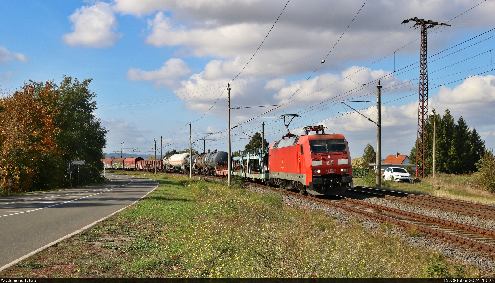 152 112-9 (Siemens ES64F) führt einen Gemischtwarenladen zwischen Amsdorf und Wansleben am See Richtung Halle Rosengarten. 🧰 DB Cargo 🕓 15.10.2024 | 13:25 Uhr