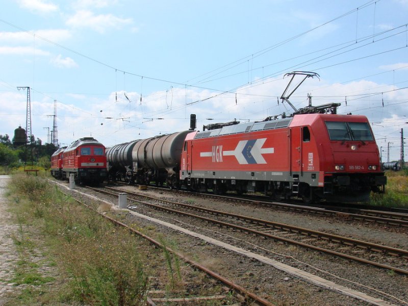 233 636-0 und 232 618-9, daneben fährt 185 582-4 von HGK vorbei, am 23.08.2008 in Großkorbetha