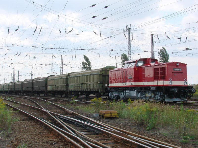 Press 112 565-7 als Rückspann am Hackschnitzelzug (Planzug aus Stendal) am 23.08.2008 in Großkorbetha