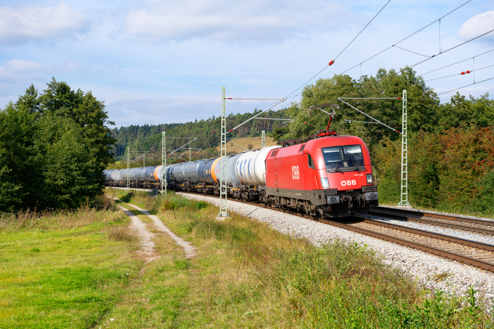 Eine unbekannt gebliebene 1116 der ÖBB mit einem Kesselzug bei Jossa Richtung Fulda, 22.09.2021