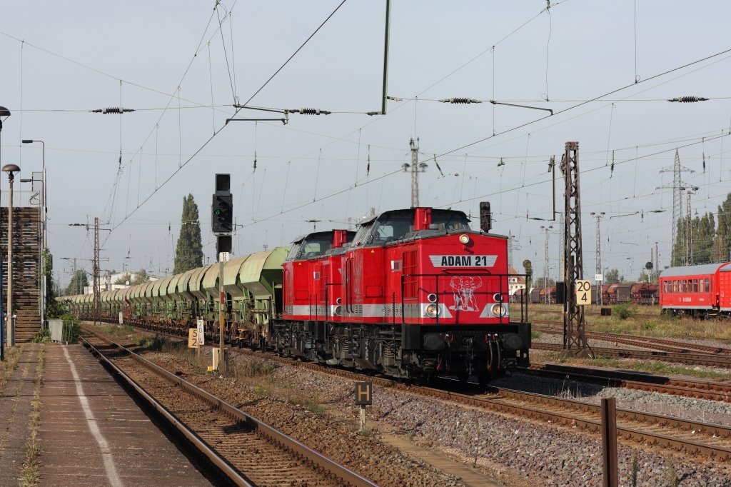 Am 28.09.2011 waren Adam 21 (202 364-6) und 11 (202 597-1) mit einem Ganzzug Schüttgutwagen unterwegs. Fotografiert wurde das Gespann am Haltepunkt Magdeburg-Eichenweiler/ Güterbahnhof Rothensee. Christian Geschonneck