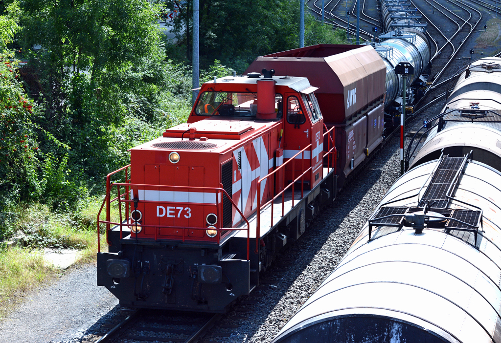 MaK DE 1002 der HGK (Licht- und Schattenbild) auf dem Rangiergelände in Wesseling - 12.08.2014