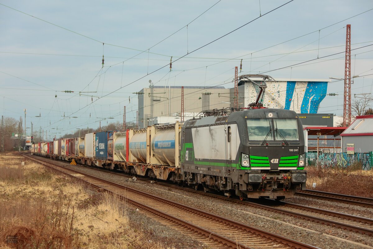 Die von Railpool angemietete 6193 125 bespannte am 09. März 2025 den KLV-Zug DGS 43143 auf seiner Fahrt von Lübeck-Skandinavienkai nach Verona Q.E. bis Kufstein. Den silbernen, für TXLogistik fahrenden Vectron konnte ich mit seinem nicht komplett ausgelasteten Zug bei Niederaudorf im Inntal fotografieren. Christoph Schneider