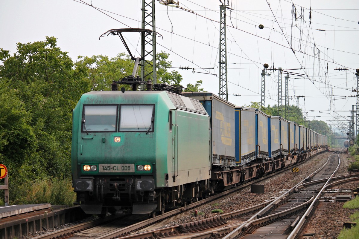 145 CL-202 von Crossrail kommt aus Richtung Köln,Aachen-Hbf,Aachen-Schanz mit einem LKW-Walter-Zug aus Novara(I) nach Genk-Goederen(B) und fährt in Aachen-West ein.