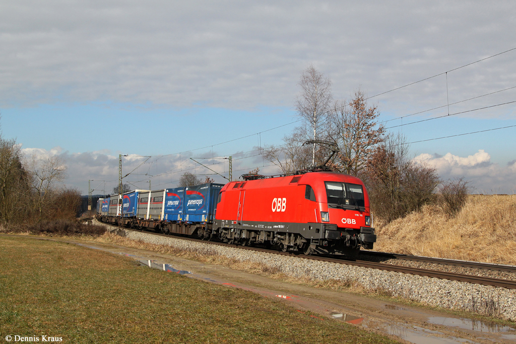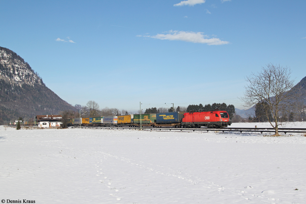 1116 167 mit einem KLV Zug am 01.02.2014 bei Niederaudorf.