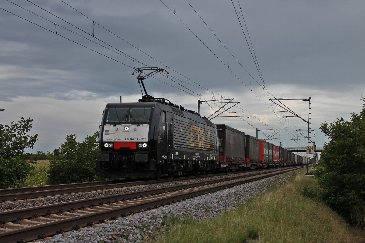 ES 64 F4-115 "ETCS" bespannte am 14.09.2013 einen TXLogistik KLV in Richtung Basel. Hier ist der Zug kurz vor Müllheim (Baden) bei Hügelheim. Tobias Schmidt