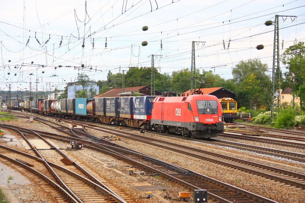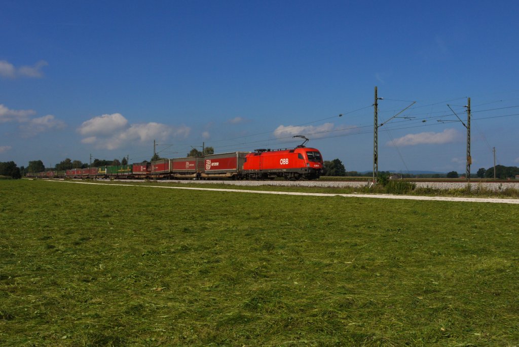 ÖBB 1116 282 zog am 07.09.12 den umgeleiteten KT 42129 (Köln-Eifeltor Bez III - Trento Roncafort) durchs Chiemgau und wird gleich den Bahnhof Übersee erreichen. N. Keneder