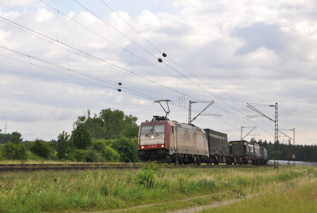 185 674-9 von Railpool fährt mit ihren Güterzug am 8. März 2012 durch den Bahnhof Roth Richtung Nürnberg. Eigentlich war das Foto mehr oder weniger ein Notschuss, da der Zug aus der falschen Richtung kam... Marcus Haffner