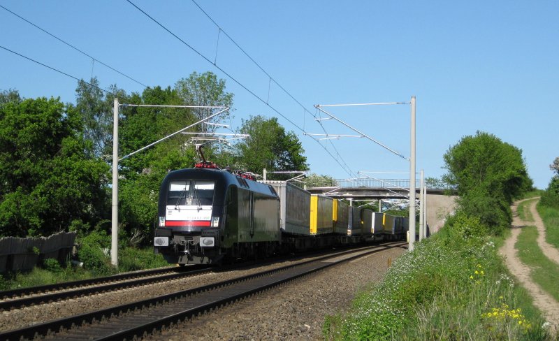 ES 64 U2-097 der MRCE hat am 13.05.09 den DGS 43141 ALSK - Verona auf der Fahrt Richtung Hamburg am Haken. Planmäßig wird diese Leistung von der TX Logistik gefahren. Aufgenommen in Altenfelde.