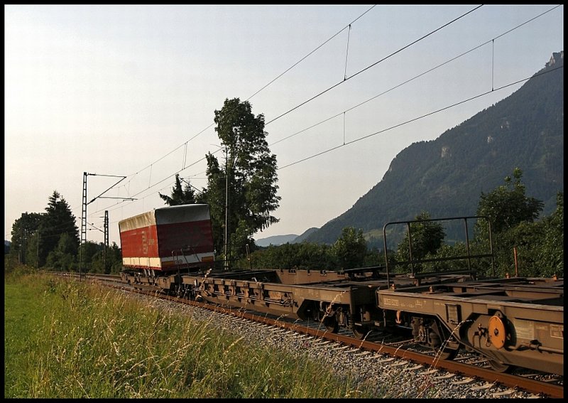 Ganz am Zugschluss rollt dieser Trailer von Belgien nach Italien. (01.08.2009)