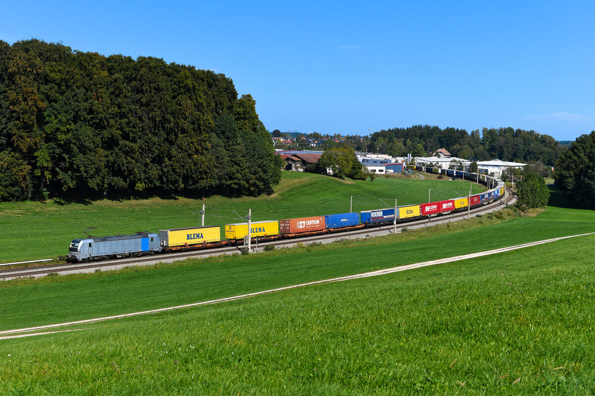 Zum Aufnahmezeitpunkt war die 193 588 von Alpha Trains noch nicht allzu lange in den Diensten der Wiener Lokalbahnen Cargo zu beobachten. Am 03. Oktober 2023 beförderte sie den DGS 42970 von Wien Freudenau nach Rotterdam Botlek. Den bunt beladenen KLV-Zug konnte ich bei Axdorf im Chiemgau fotografieren, da er aufgrund von Bauarbeiten an diesem Tage über Salzburg und München geleitet wurde.