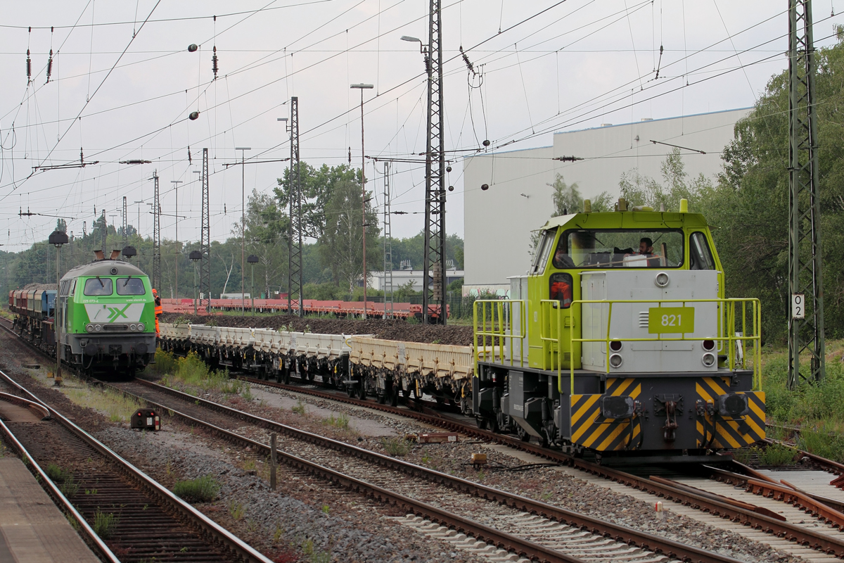 NRS - Nordic Rail Service GmbH, Lübeck [D] mit der "264 011-8" [NVR: "92 80 1264 011-8 D-NRS"] und einem langen Güterzug offener Drehgestell-Güterwagen mit Kies befüllt am 03.06.20 Bf. Hamburg Harburg Lothar Stöckmann