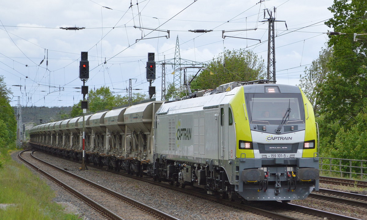 Einfach beeindruckend wie ruhig und doch so kraftvoll diese neuen Loks ihre Last ziehen vor allem auch im Vergleich mit einer Class 66, hier ITL - Eisenbahngesellschaft mbH, Dresden [D] mit ihrer "159 102-3" [NVR-Nummer: 90 80 2159 102-3 D-ITL] und einem langen Schüttgutwagenzug am 05.05.20 Bf. Saarmund. Lothar Stöckmann