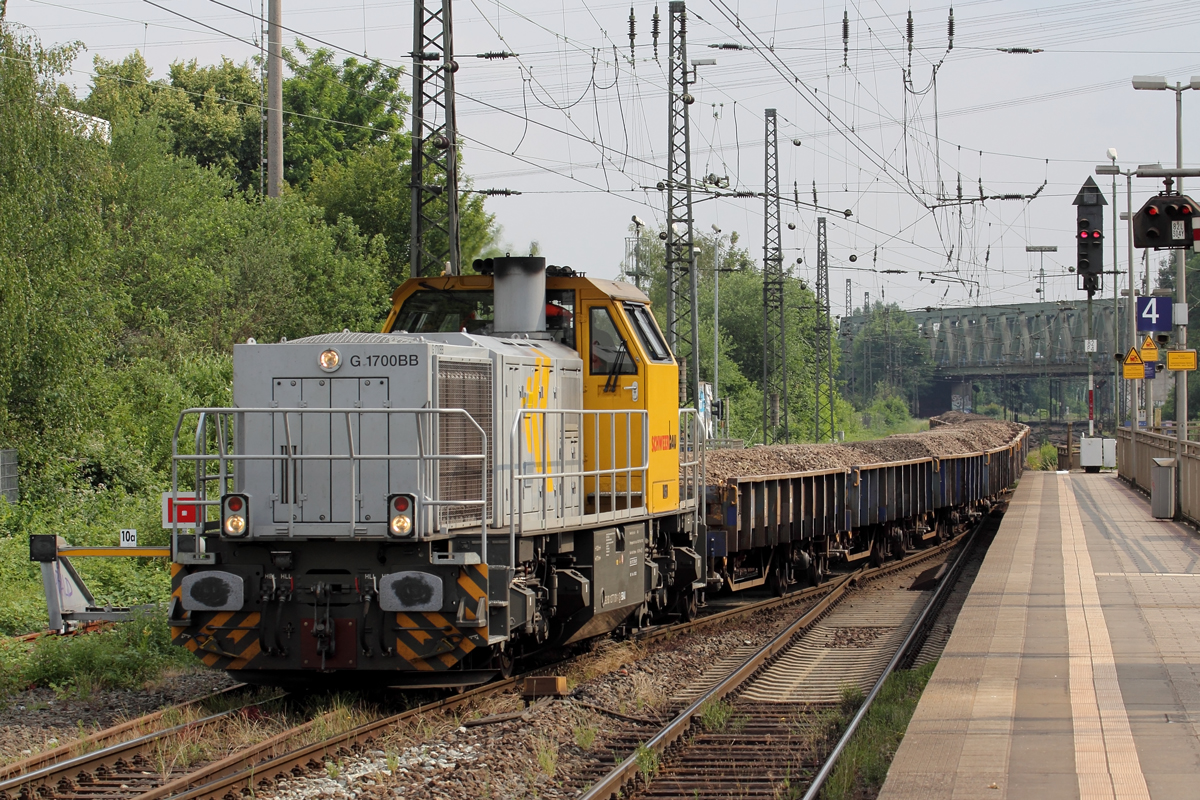ITL mit "250 007-2" (NVR: "92 80 1250 007-2 D-ITL") und einem Schüttgutwagenzug am 13.05.20 Durchfahrt Bf. Flughafen Berlin Schönefeld. Lothar Stöckmann