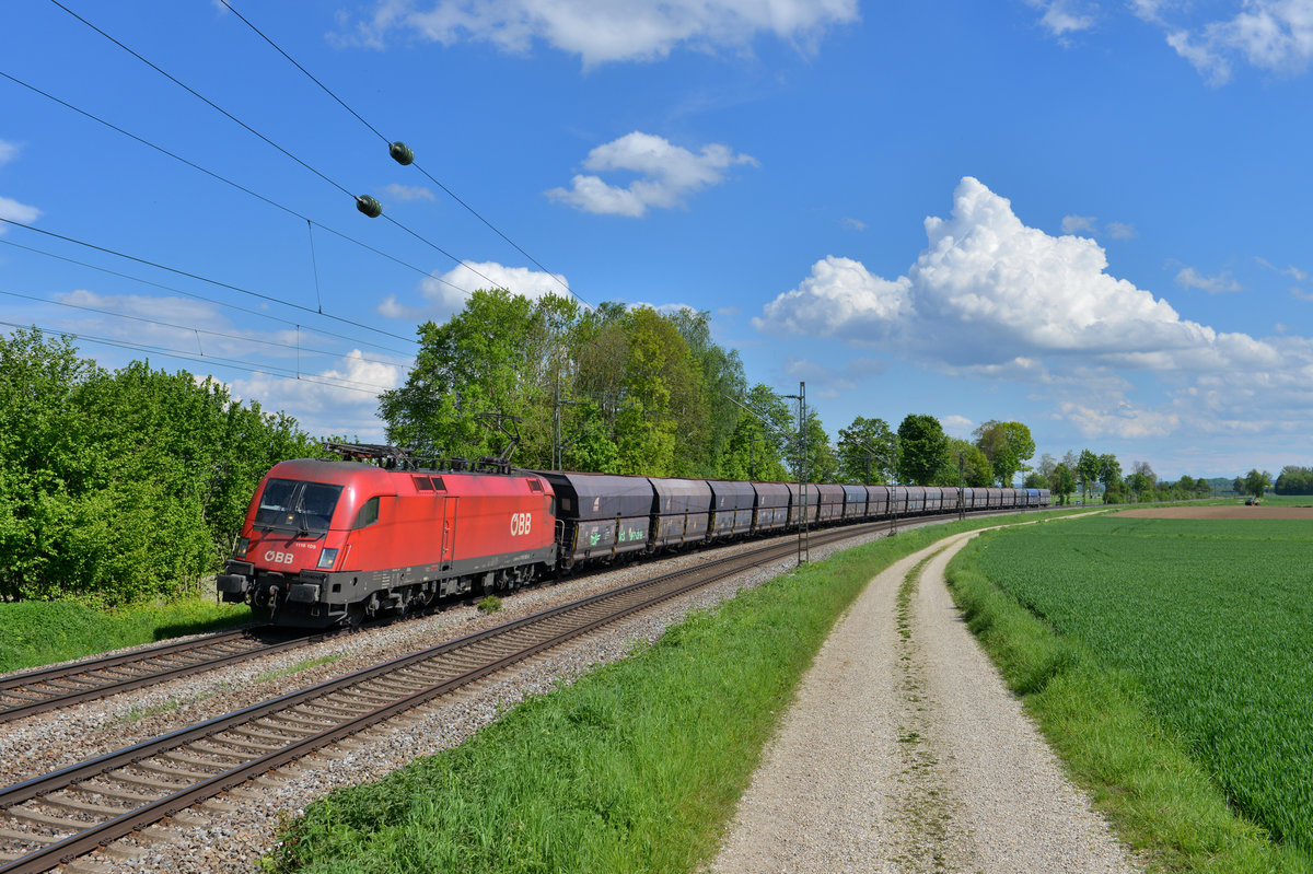 Vom Ostportal des Esslinger Tunnels ergibt sich folgender Blick auf Bahn und Landschaft. Das alte Bahnwärterhäuschen wird von den neuen Besitzern gut gepflegt, im Hintergrund eine für das Altmühltal typische Felsformation und auch das dem Tal den Namen gebende Flüsschen wird sichtbar, samt zweier Paddelboote. Die beschauliche Szenerie wurde nur kurz durch die Durchfahrt von 185 346 und einer Schwesterlok mit einem Schotterzug gestört (08. September 2016). Christoph Schneider