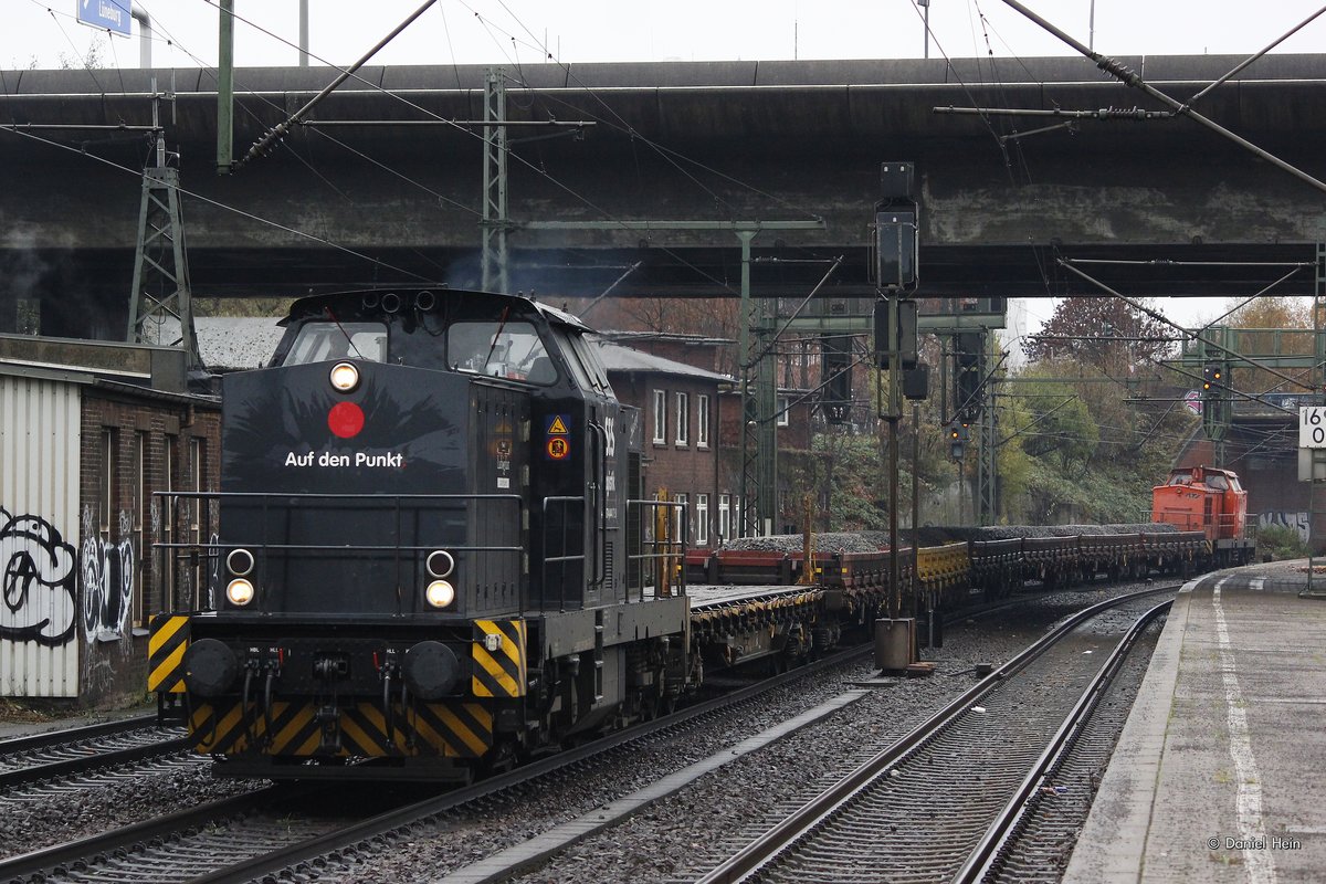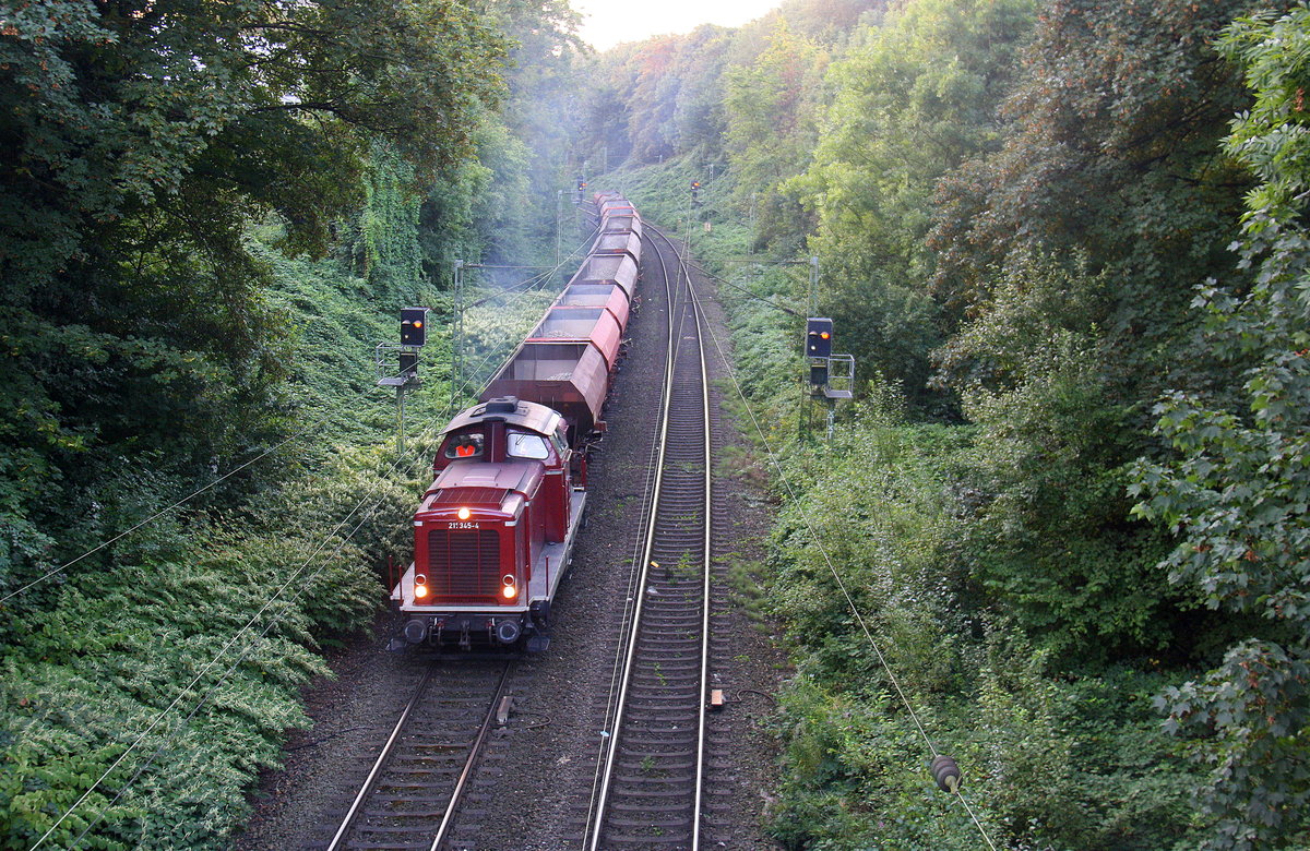 211 345-4 AIXrail fährt mit einem Schotterzug aus Aachen-West nach Stolberg-Hbf(Rheinland) bei der Ausfahrt aus Aachen-West und fährt in Richtung Aachen-Schanz,Aachen-Hbf,Aachen-Rothe-Erde,Stolberg-Hbf(Rheinland).