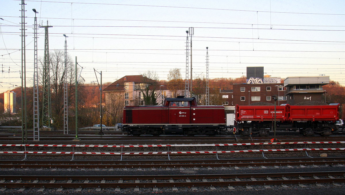 211 345-4 AIXrail kommt durch Aachen-Schanz,und kommt aus Richtung Aachen-West und fährt in Richtung Aachen-Hbf,Aachen-Rothe-Erde,Stolberg-Hbf(RheinlandAachen-West mit einem Schotterzug aus Aachen-West nach Stolberg-Hbf(Rheinland).