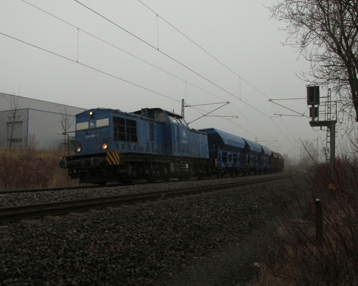 In der Woche 34 trafen in Hennigsdorf bei Berlin mehrere Zügen mit Schotter ein, so am 20.8.15 mit 203 148 (schwarz, vorn ) und 203 121 (rot). Anschließend wurde noch auf dem Bahnhof rangiert. Für mehrere Tage war der Bahnhof ziemlich voll mit Fc-s -Wagen verschiedener Eigentümer.Von hier aus wurde täglich ein Teil davon auf die Baustellen gebracht. Im Monat August standen auf der S-Bahn-Strecke von Berlin nach Oranienburg im nördlichen Teil umfangreiche Bauarbeiten mit Gleiserneuerung an, diese Aktion dürfte damit m Zusammenhang gestanden haben. Andreas Bogott