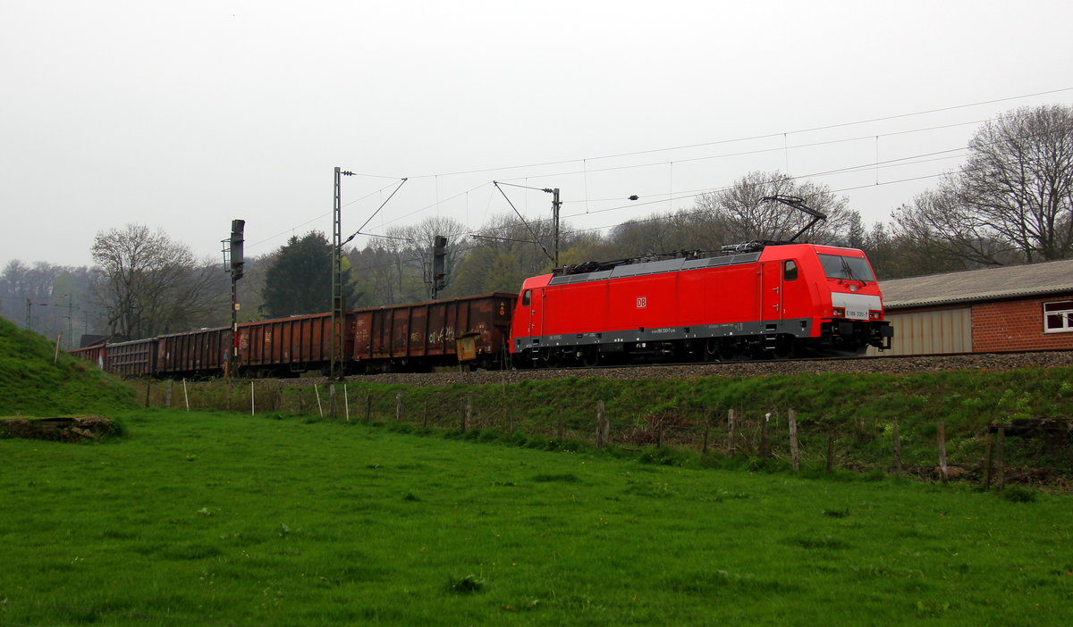 186 330-7 DB-Schenker fährt als Schubhilfe sie schiebt einem schweren Schrottzug aus Köln-Kalk(D) nach Genk-Goederen(B) bis zum Gemmenicher-Tunnel.
