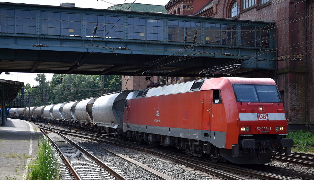 DB Cargo AG, Mainz mit ihrer "152 168-1" [NVR-Nummer: 91 80 6152 168-1 D-DB] und einem Staubgutzug am 21.05.24 Höhe Bahnhof Hamburg-Harburg. Lothar Stöckmann