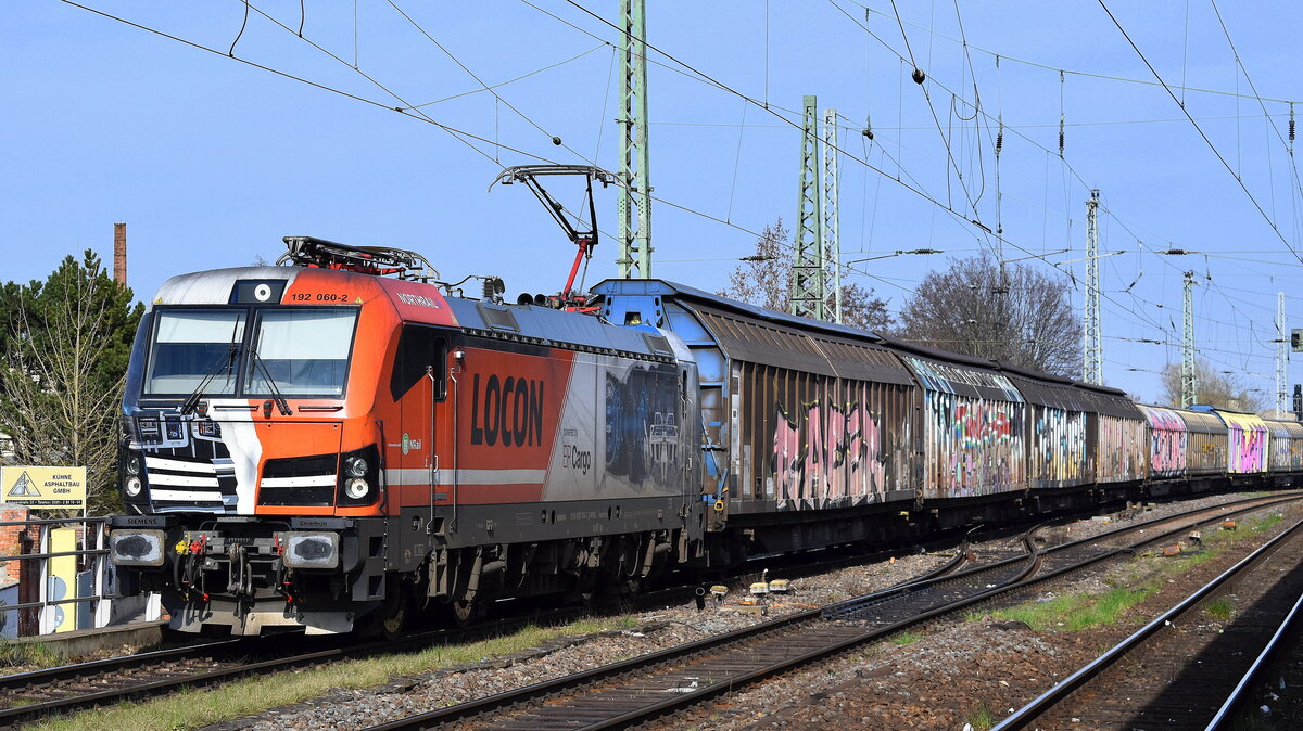 LOCON LOGISTIK & CONSULTING AG, Berlin [D] mit der "192 060-2" [NVR-Nummer: 91 80 6192 060-2 D-NRAIL] und einem Ganzzug Schiebewandwagen am 19.03.24 Vorbeifahrt Bahnhof Magdeburg-Neustadt. Lothar Stöckmann