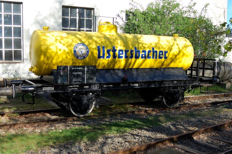 Auch ein Bierwagen, den man so heute garnicht mehr sieht, fand seinen Weg in den Bahnpark Augsburg. Ein ehemals bei der Deutschen Reichsbahn eingestellter, 130 hl fassender "Kesselwagen" der Brauerei "Ustersbacher" auf dem Freigelände im Bahnpark neben dem Eingang. Helmut Dimitroff