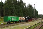 Rennsteigbahn 94 1538 mit den beiden Güterwagen DR Halle 591 382 P und DR 4801 P Gn, während dem 110. Streckengeburtstag am 23.08.2014 im Bahnhof Rennsteig. Frank Thomas