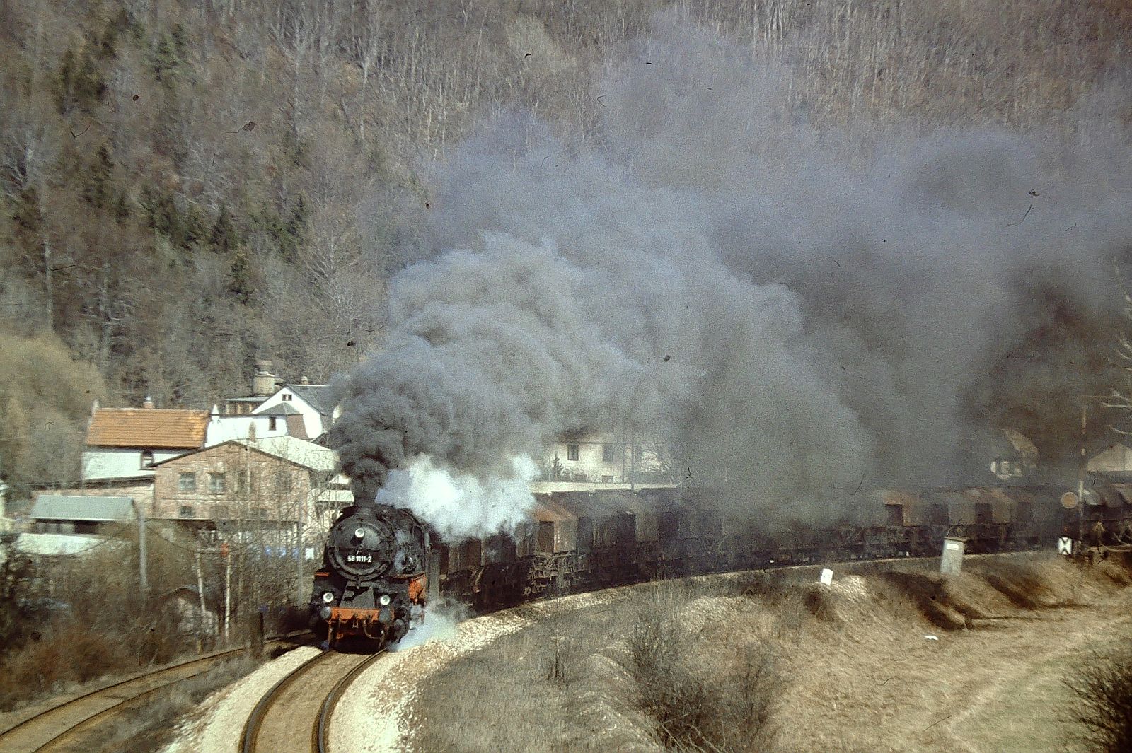 028 (Plandampf im Thüringer Wald Rennsteig & Lobenstein 18.- 21. März 1993 ) bei Gräfenroda Schublok 50 3688-4 Zuglok 58 1111-2 mit 60139 von Arnstadt nach Suhl aufnahme S-W Agfa Iso 100 mit Kamera Minolta X-300 Jan Stein