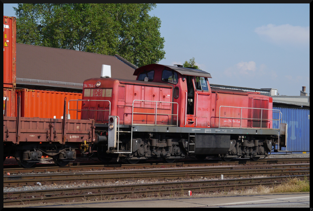 Neben Rhenus Logistics fährt auch DB Schenker Containerzug-Leistungen in den Mannheimer Hafen. Optimal dafür geeignet sind die 294er. So ist auch am 17.06.2013 die 294 764-6 mit dem umrangieren von leeren Wagen beschäftigt. TH