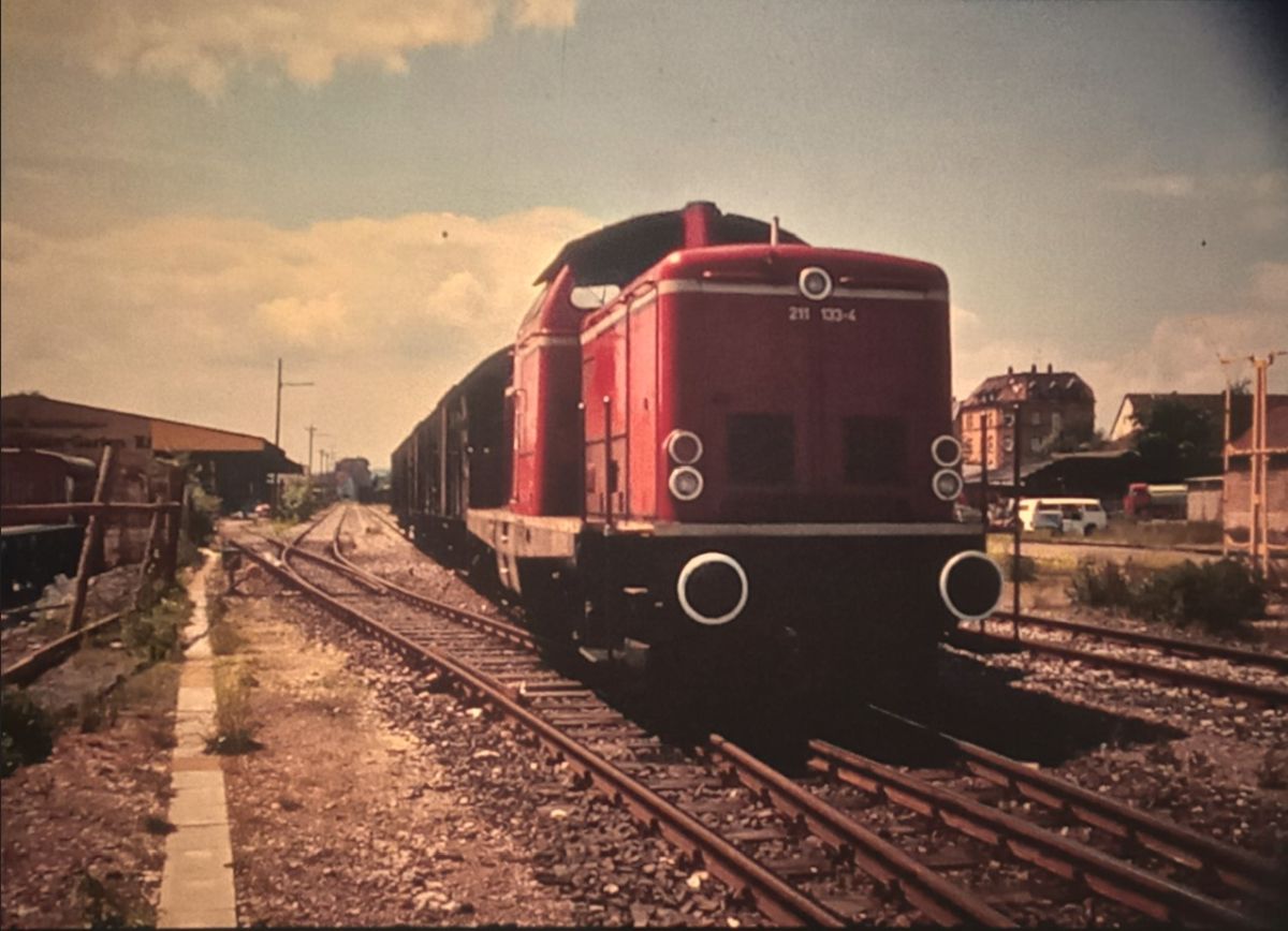 11 Juni 1991 211 133-4 (BwTK)Heilbronn-Südbahnhof seit der Einführung der Stadtbahn (AVG) nach Öhringen/Hohenlohe Kbs 783 (710.4) ist die Srecke ab dem Abzweig HN-Karlstor abgerissen worden . Heilbronn Südbahnhof ging bis in die Ende 60 jahre des letzten Jahrhunder die Schmalspurbahn nach Beilstein-Marbach ( Bottwartalbahn) im Südbahnhof war die Rollschemelanlage, zu dem Zeitpunk bis dato der Aufnahme gab es dort vier Normalspurgleise noch.Hn Südbahnhof Lag zwischen der Brücke Oststraße und Charlottenstraße heute Überbaute Wohnfläche links Anschlußgleis Turn&Taxis Baustoffhandel dahinter gab es noch Fruchhofhalle,dann sieht man ganz hinten ein altes Gebäude ( ex. Bordell) das Gleis führte links vorbei zum Knorr-Malzena über die Charlottenstrasse und rechts rum über die Sontheimerstrasse Jan Stein