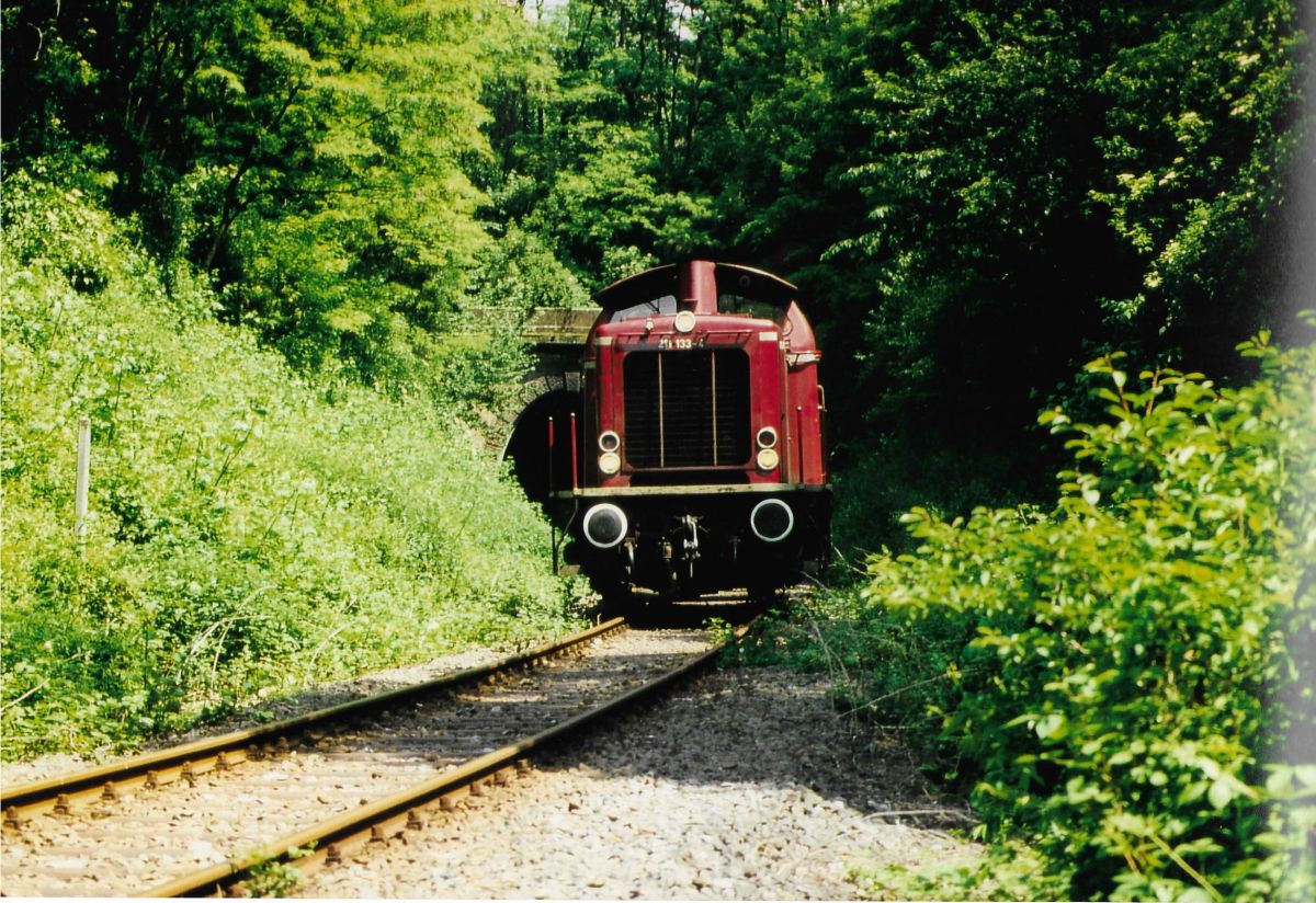 11 Juni 1991 Lerchenbergtunnel ausfahrend Länge 3.3Km 211 133-4 (BwTK) Lz 86795 von HN-Rbf. nach HN-Südbahnhof (Knorr-Malzenar) seit der Einführung der Stadtbahn (AVG) nach Öhringen/Hohenlohe Kbs 783 (710.4) ist die Srecke ab dem Abzweig HN-Karlstor abgerissen worden . Heilbronn Südbahnhof ging bis in die Ende 60 jahre des letzten Jahrhunder die Schmalspurbahn nach Beilstein-Marbach ( Bottwartalbahn) im Südbahnhof war die Rollschemelanlage, zu dem Zeitpunk bis dato der Aufnahme gab es dort vier Normalspurgleise noch. Jan Stein