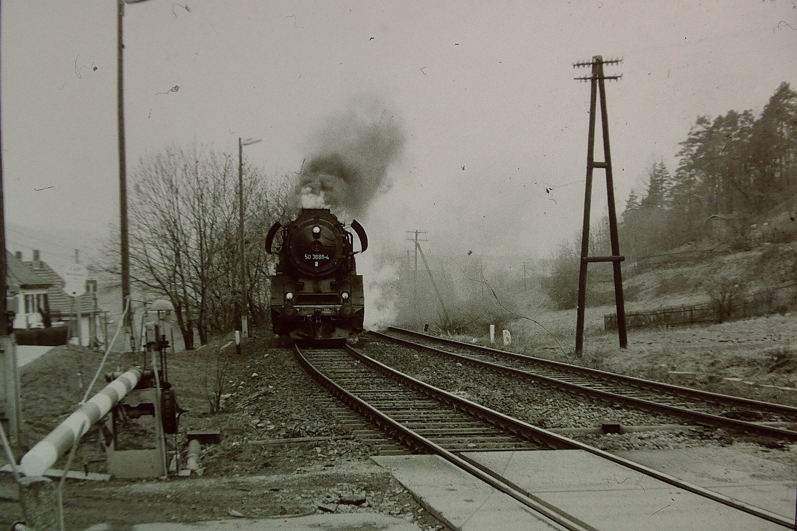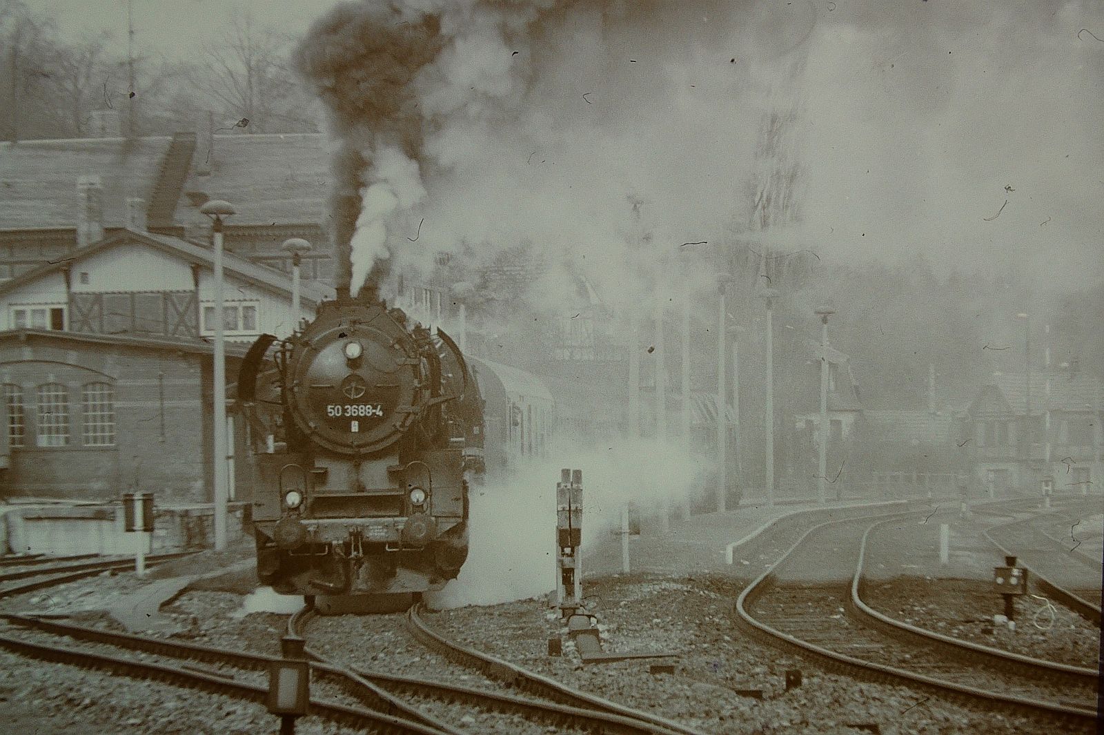 046 (Plandampf im Thüringer Wald Rennsteig & Lobenstein 18.- 21. März 1993 ) 50 3688-4 mit N 6924 von Arnstadt nach Imenau Einfahrt Elgersburg aufnahme S-W Agfa Iso 100 mit Kamera Minolta X-300 Jan Stein