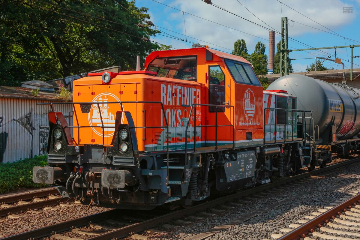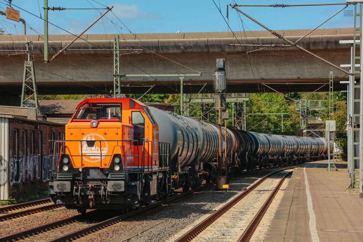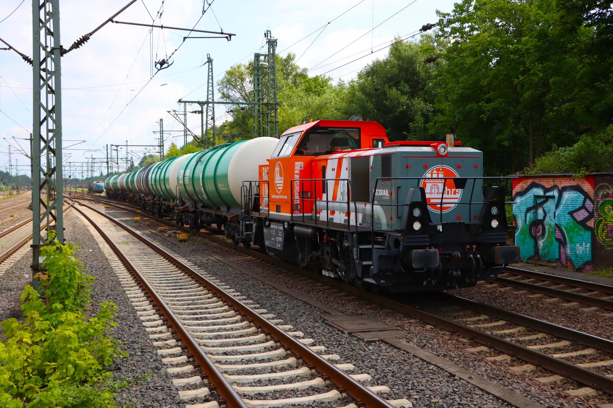 HRS Nexrrail Alstom Prima H3 (1002 045-5) mit Kesselwagen in Hamburg Harburg am 18.07.25 vom Bahnsteig aus fotografiert