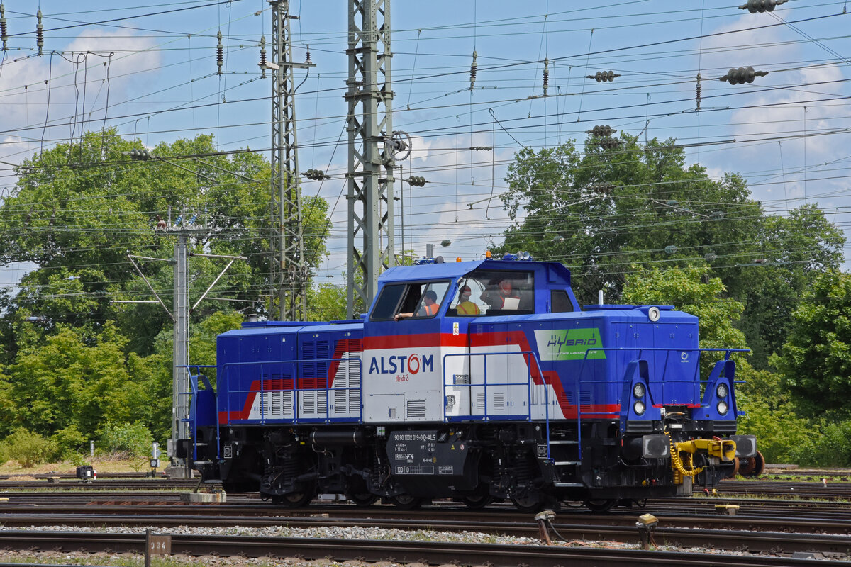 Rangierlok 90 80 1002 019-0 rangiert am 29.06.2022 beim badischen Bahnhof.