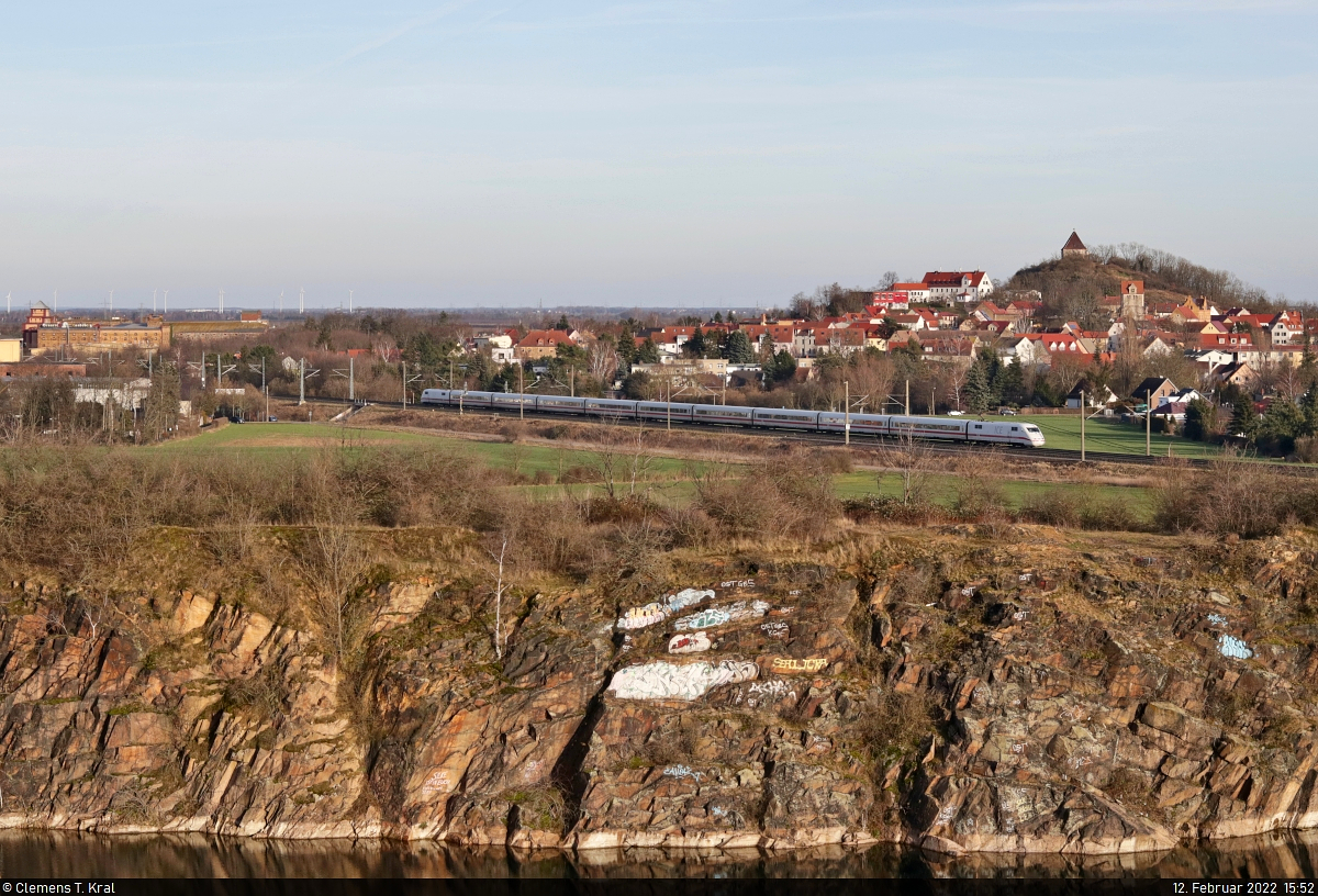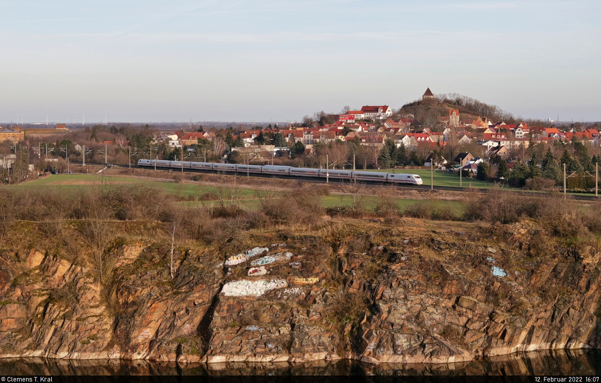 Ein 401 mit neun Wagen streift die Stadt Landsberg (Saalekreis). Gesehen vom ehemaligen Steinbruch am Gützer Berg.